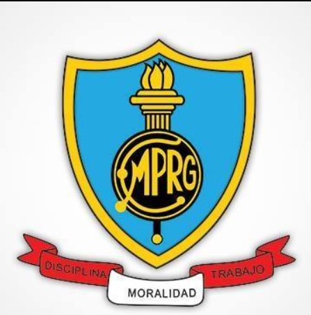 El borde negro y el interior del emblema con las iniciales CM "PRG", denotan Prudencia, Rigor, Honestidad y Obediencia que se inculcan en este Centro de Estudios.